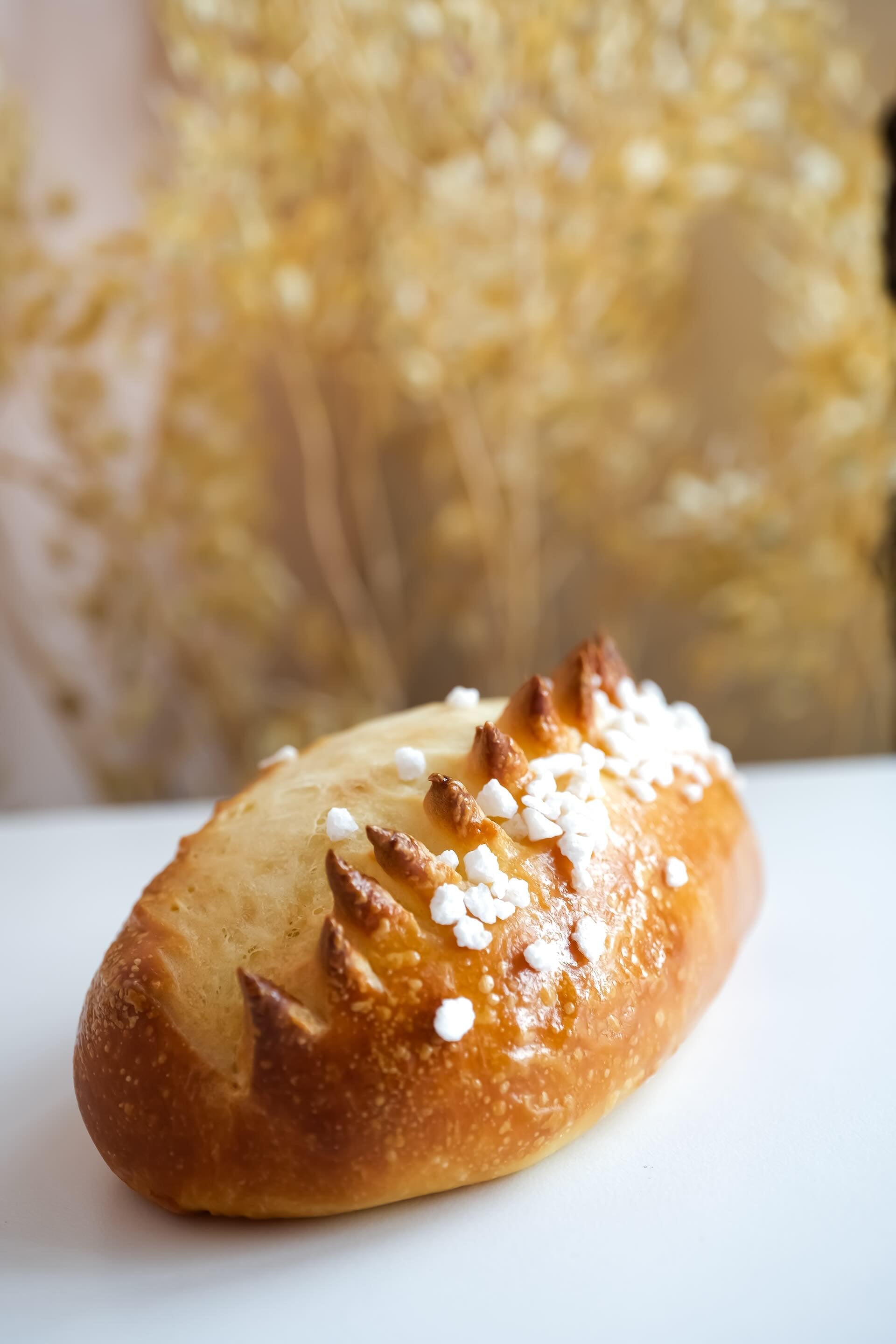 Notre pain au lait est le compagnon idéal pour vos petits-déjeuners ou goûters, grâce à sa mie moelleuse et légèrement sucrée. C e pain vous rappellera les plaisirs simples et délicieux de l'enfance.